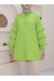 Yakası Bağcıklı Kolları katlı Fırfırlı Düğmeli Tunik -Yağ Yeşili