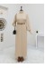Balıkçı Yaka Kemerli Likralı Elbise -Vizon