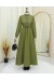 Cepleri Taşlı Beli Bağlamalı Kolu Lastikli Elbise -Yağ Yeşili