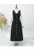Metal Düğmeli Yırtmaçlı Triko Hırka -Siyah