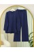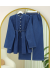 Yarım Düğmeli Önü Pliseli Beli Bağlamalı Pantolonlu Kot Takım -İndigo