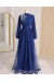 Önü Taş Detaylı Drapeli Kemerli Tül Abiye -Saks