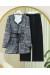 Beli Bağlamalı Çift Cepli Desenli Scuba Takım -Siyah
