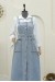 Boydan Düğmeli Çift Cepli Kot Salopet -Buz Mavi