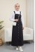 Boydan Düğmeli Çift Cepli Kot Salopet -Siyah