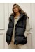 İçi Astarlı Beli Büzgülü Kürklü Ceket -Krem