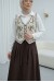 Çiçek Nakışlı Triko Detaylı Düğmeli Bohem Bluz -Bej