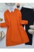 Bisiklet Yaka Baklava Desen Triko Kazak -Turuncu