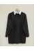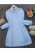 Önü Kurdele Detaylı Düğmeli Önlük Yaka Gömlek -Mavi