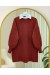 Yuvarlak Yaka Yarasa Kol Beli Lastikli Etekli Oyşo Takım -Bordo